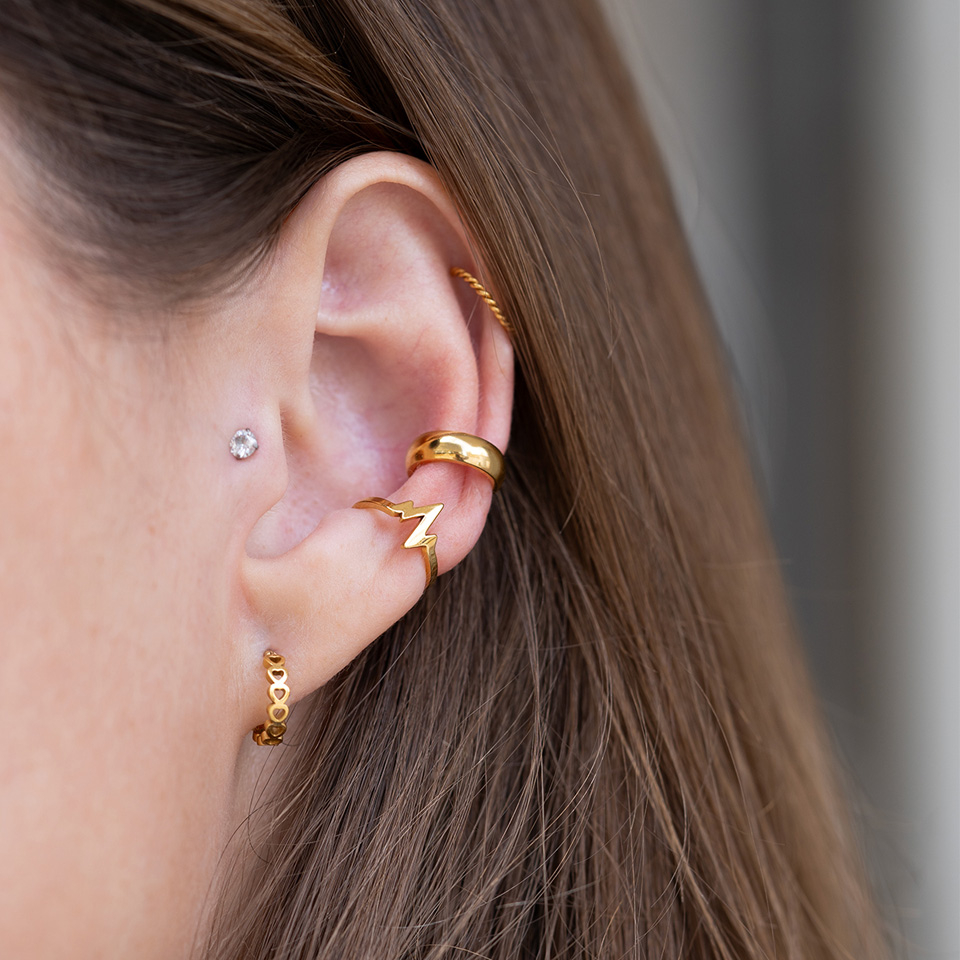 Posição: Tragus, Septum, Rook, Lóbulo, Helix, Anti-helix