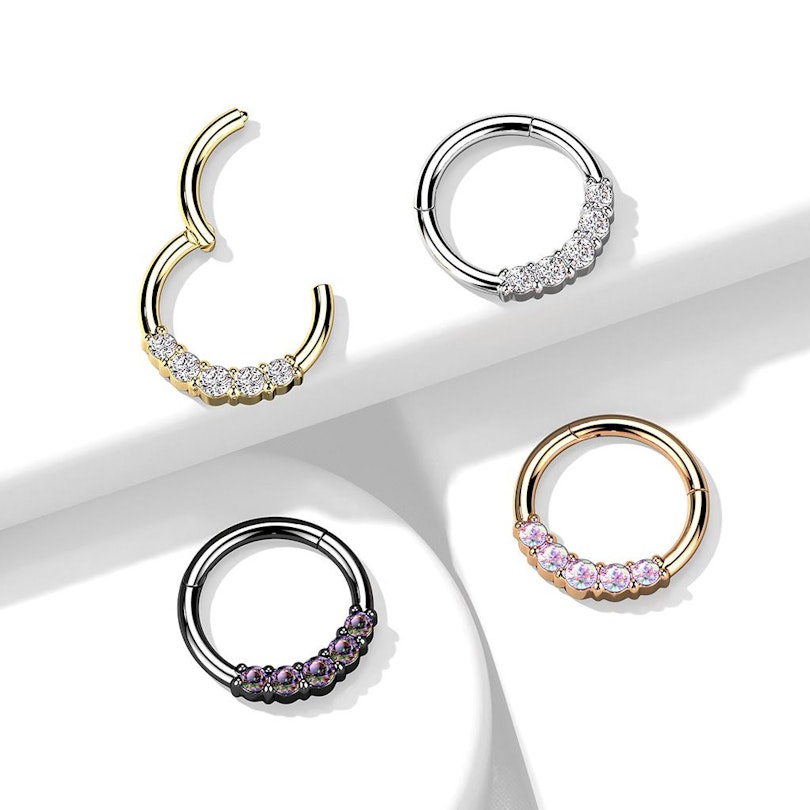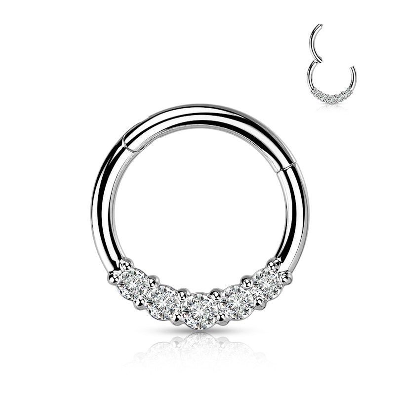 Nome: Argola articulada em aço cirúrgico com cinco pedras