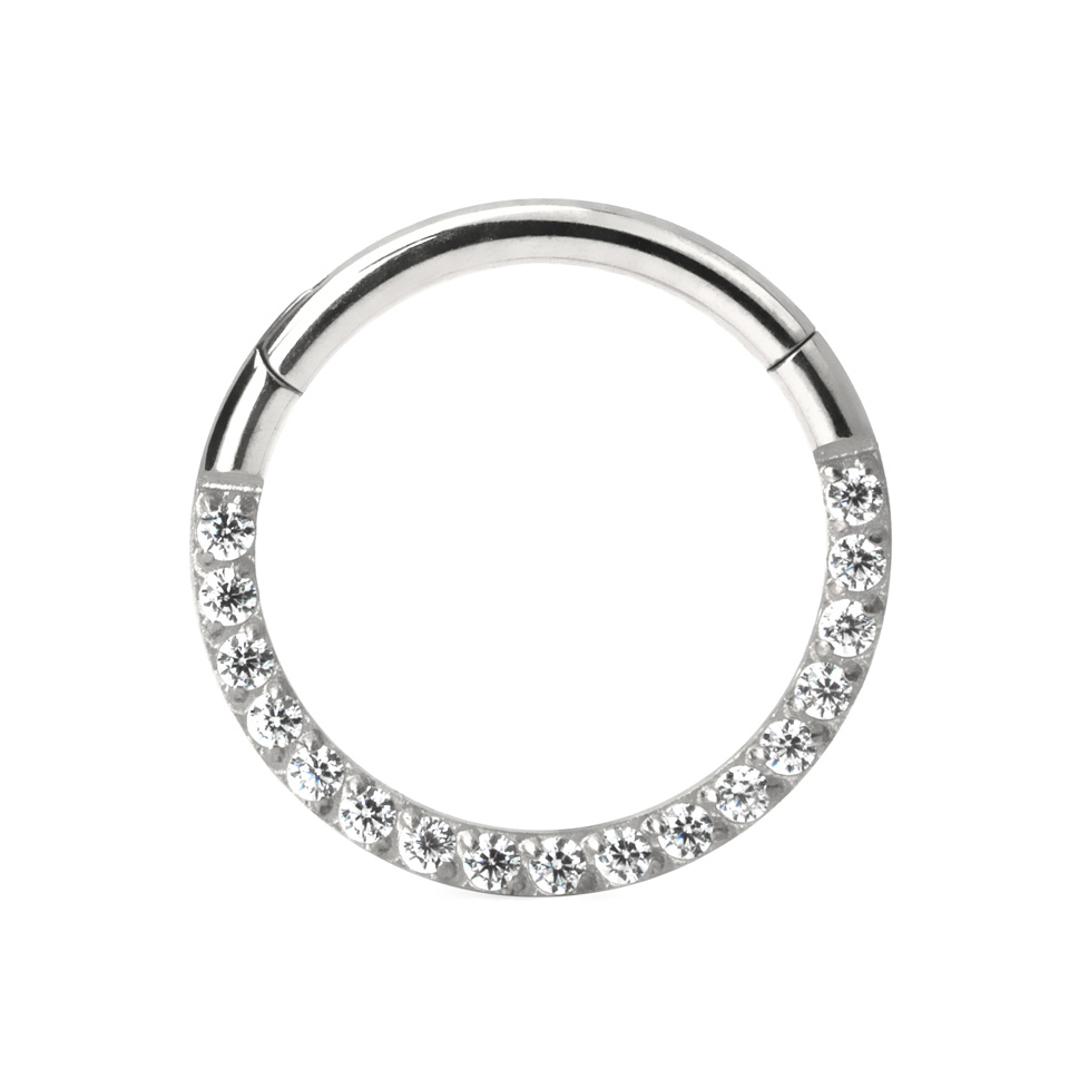 Argola articulada em titânio com fileira de pedras