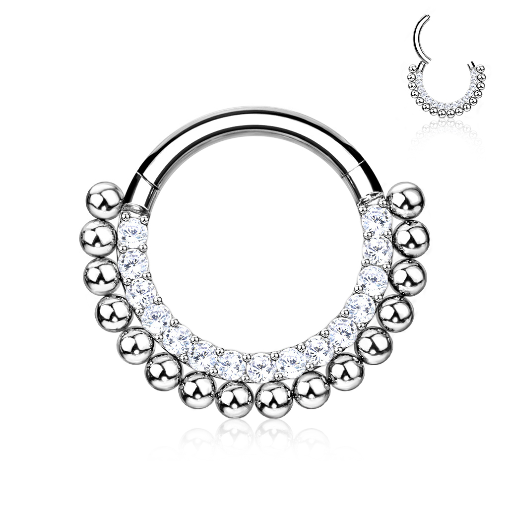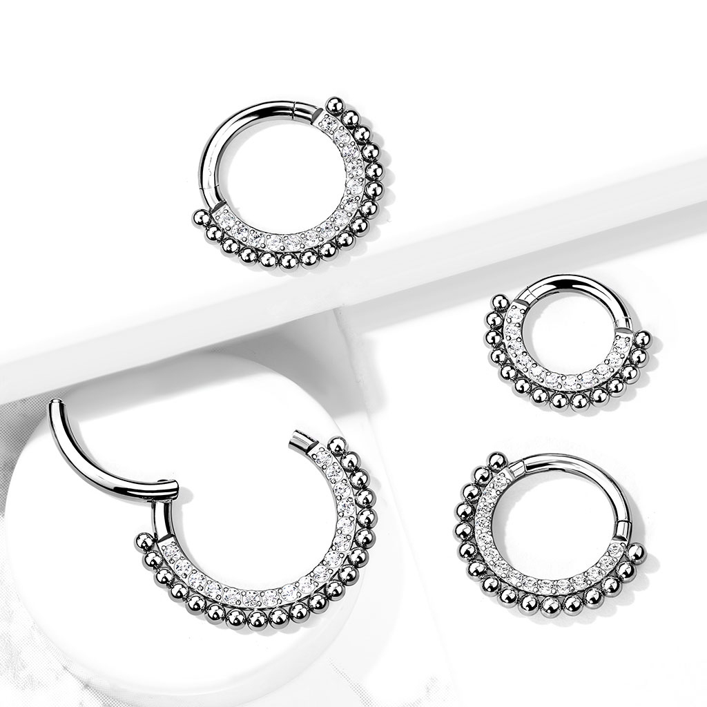 O titânio é um dos melhores materiais que podes utilizar no teu piercing e é por isso que as joias de titânio são utilizadas como joias iniciais. Normalmente, as joias de titânio conseguem ser bastante aborrecidas, porque não têm pedras ou ornamentos. Porém, isso deixa de ser um problema com esta joia, visto que tem muitas pedras e miçangas ao seu redor.
