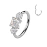 Três pedras, um flex gigante. Esta argola articulada em titânio com três zircónias dá ao teu piercing o brilho necessário. É subtil o suficiente para o quotidiano e brilhante o suficiente para atrair atenção.