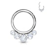Esta argola é feita de titânio que é um dos melhores materiais para utilizar em piercings. É por isso que é tão utilizado em primeiras joias, ao fazer um novo piercing. A argola tem uma espessura de 1,2 mm e está disponível com um diâmetro de 8 mm ou de 10 mm. Independentemente do diâmetro que escolheres, a argola terá sempre cinco pedras no fundo. A maior pedra é a central, sendo que as pedras seguintes vão diminuindo de tamanho.