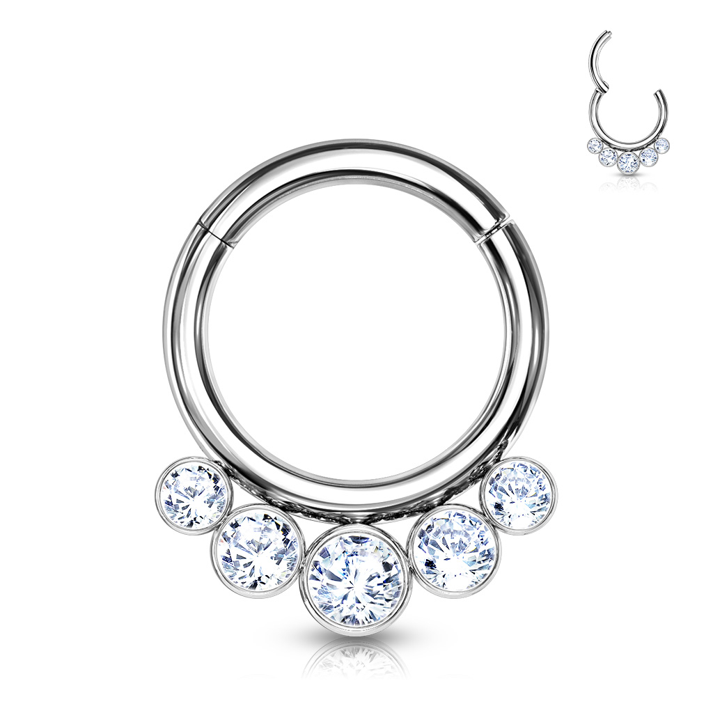 Argola articulada de titânio com cinco pedras