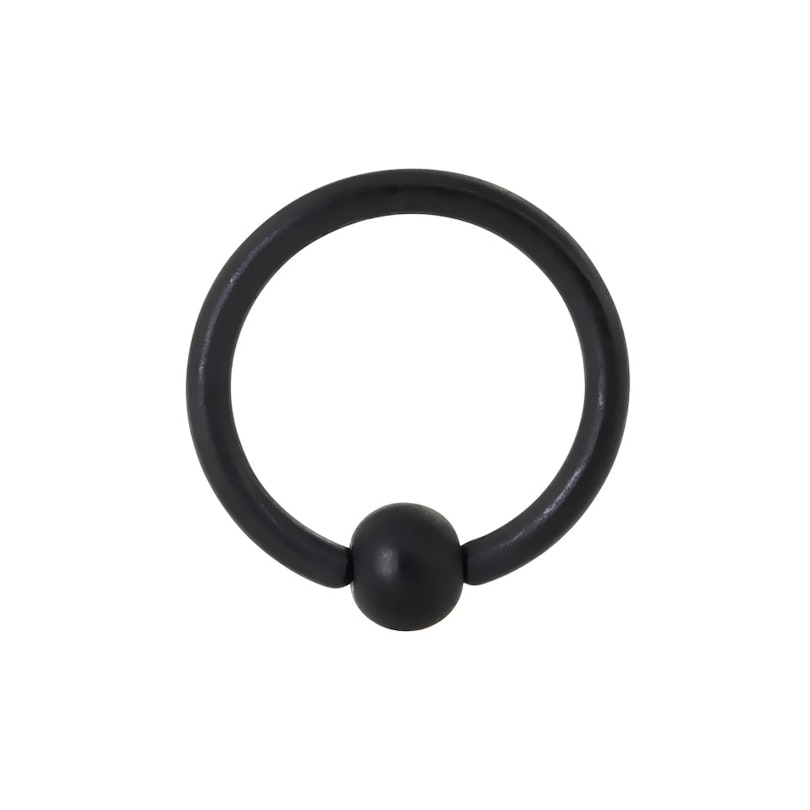 Esta argola CBR é revestida a preto mate e é feita de aço cirúrgico, que é seguro e confortável para utilização em piercings cicatrizado.