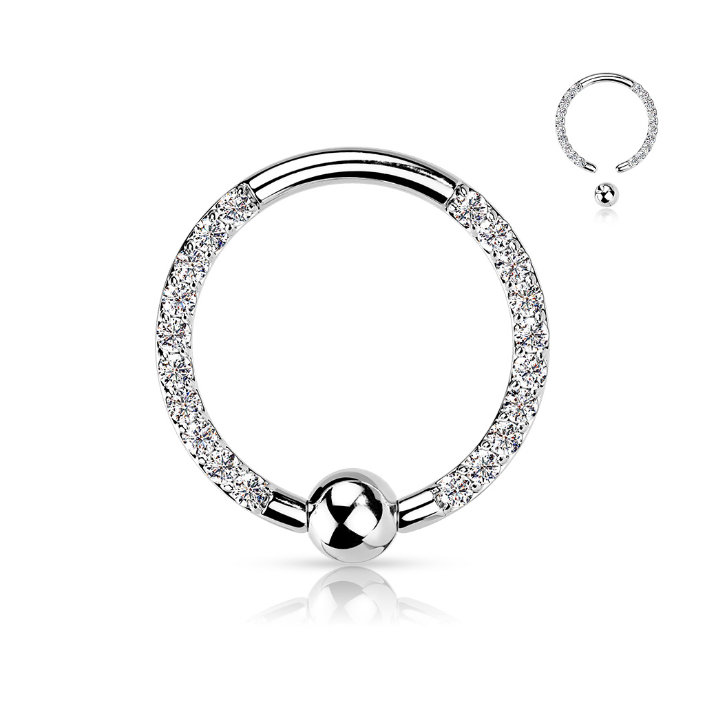 É raro encontrar uma argola CBR com um design tão elegante como este. A frente da argola é decorada com zircónias cúbicas brilhantes em cada lado, tornando-a numa joia verdadeiramente chamativa para o teu septo ou para piercings na orelha. As boas notícias não acabam aqui. Esta argola é feita de titânio G23; portanto, ao comprá-la estarás a dar a melhor qualidade ao teu piercing. As joias de titânio para piercings são adequadas para todos os tipos de pele, dando-te a segurança de teres uma joia antialérgica para o teu piercing. A argola tem 1,2 mm de espessura e está disponível com 8 mm ou 10 mm de diâmetro. Também é possível escolher a cor. Vais optar por um dourado ou prateado clássico ou o teu coração está mais virado para o ouro rosa romântico ou talvez para o preto misterioso? A cor das pedras também muda consoante o modelo, de modo a oferecer uma variedade excitante de cores.