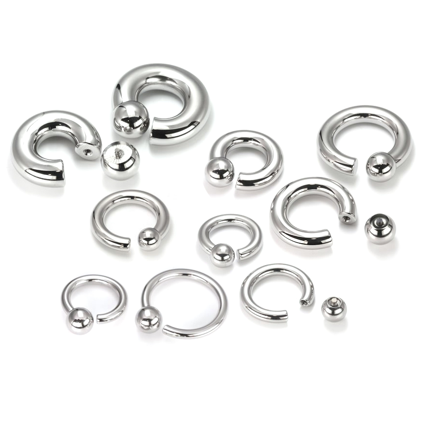 Apresentamos-lhe as joias grandes para piercings. Agora já pode adquirir a sua argola extra grande com a mais prática bola do mercado: em vez de ser encaixada nas extremidades, nesta argola a bola é extremamente fácil de colocar.