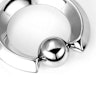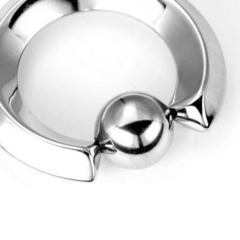 A argola com bola abre e fecha com a bola. Essa é proporcionalmente maior em tamanho dependendo do tamanho de joia que você escolher. A bola tem duas pequenas cavidades nas laterais, onde a argola encaixa-se. Algumas vezes a bola pode mexer um pouco na joia, mas desde que ela esteja bem encaixada nas cavidades ela não chacoalhará.