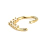 Nesta página encontrarás uma argola com um visual um pouco mais divertido. Começa de forma normal e redonda, mas termina num pequeno V na parte inferior. Por isso, se gostas de te destacar na multidão com as tuas joias, esta é a peça certa para ti. A argola é feita de latão e é revestida com diferentes materiais. Por exemplo, se escolheres a versão em prata, a joia é revestida a platina. Por sua vez, os modelos em ouro são revestidos a ouro de 14 quilates. O pequeno V com pedras no fundo dá um pouco mais de brilho à peça.