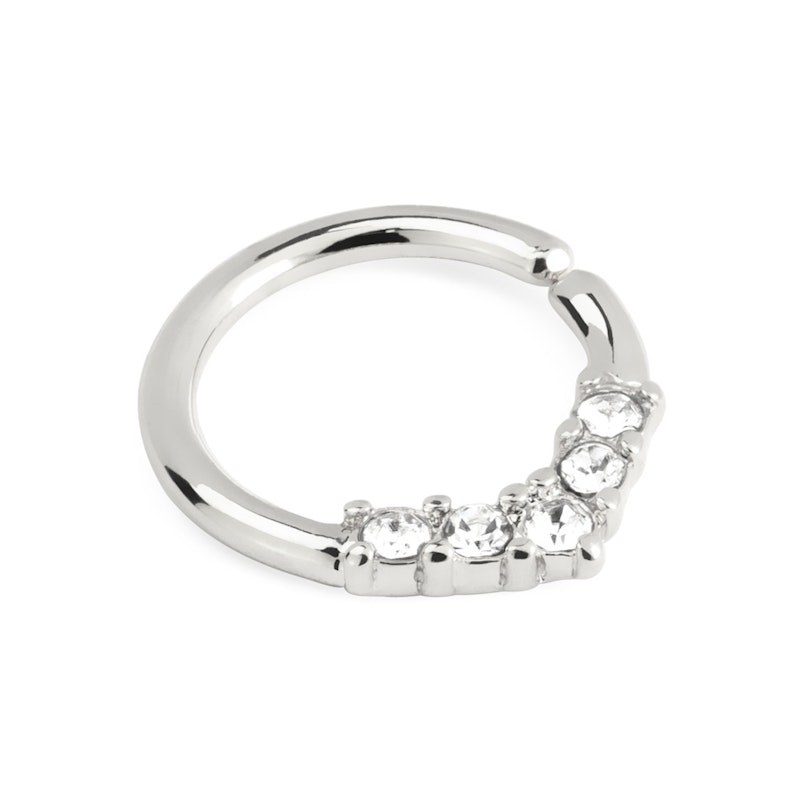 A argola é fácil de inserir no piercing, porque não é contínua, tendo uma pequena abertura num dos lados. Este fator permite que a argola seja torcida para se abrir e assegura que a argola mantenha a sua forma linda ao longo do tempo.
