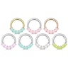 A argola contínua é aberta através de torção, tornando-se muito simples de utilizar. Além disso, podes ainda escolher a cor das cinco pedras refletoras de entre várias opções.