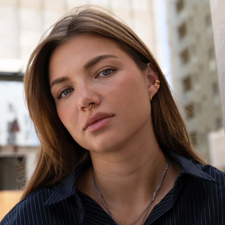 Esta argola versátil está disponível em vários tamanhos, permitindo-te encontrares a medida certa para vários piercings como, por exemplo: