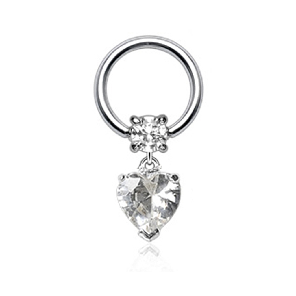 Uma argola é uma joia super doce com um coração de pendente. Esta joia é ideal para um piercing na hélice ou piercing íntimo, onde ficará especialmente doce e sedutora. É feita de aço cirúrgico, e o seu coração é um brilhante de cor branca. Este pendente tem também um diamante, que permite que a luz se reflita em muitos ângulos distintos e especialmente quando se move, brilhando como um sol.
