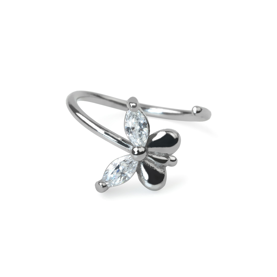 Esta argola tem uma espessura fina (0,8 mm) e um diâmetro pequeno, por isso, esta encantadora borboleta ficará super fofinha nos teus piercings no nariz ou na orelha como, por exemplo, na narina, no tragus ou no helix.