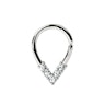 Esta argola contínua de torção tem a forma de uma gota e cinco pedras delicadas a decorar a sua frente. É uma joia feita de aço cirúrgico, por isso, é forte e não perde o seu brilho. Está disponível com espessura de 1 mm e de 1,2 mm, ou seja, pode ser utilizada em vários piercings como, por exemplo, o septum, o tragus ou o helix.