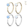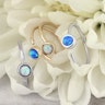 A argola está decorada com uma pequena opala de 2,5 mm. Trata-se de uma opala sintética. Além de escolher o tipo de outro desta joia, também pode escolher a cor da opala: branca ou azul. A cor branca tem tons avermelhados, amarelo e verde, mas o tom predominante é o branco. Assim é o mesmo para a opala azul, com tons azul-claro, turquesa e azul-escuro.