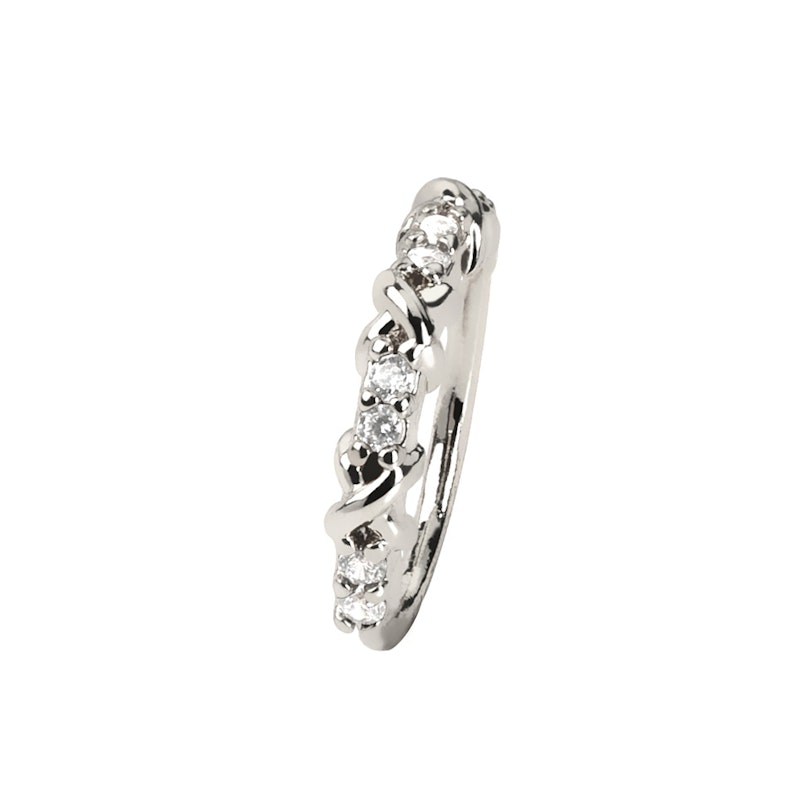 Nome: Argola de torção com design em cruz e fileira de pedras