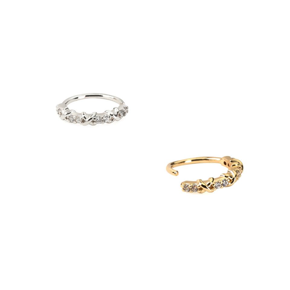 Nome: Argola de torção com design em cruz e fileira de pedras
