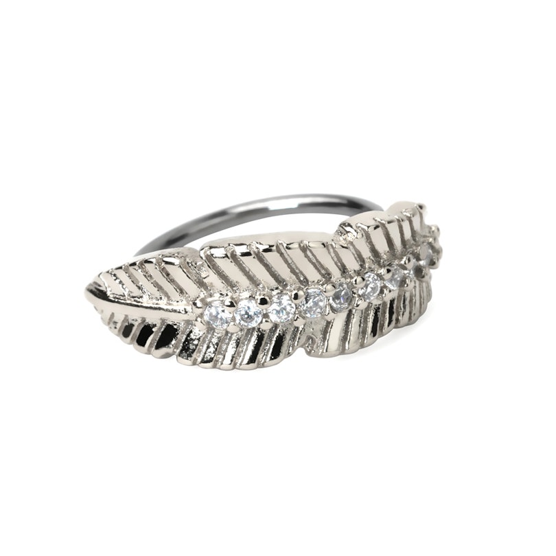 A parte da argola que estará em contacto com a tua pele é de aço cirúrgico e a decoração é de latão. Para a colocares, tens de torcer para a frente ou para trás até formar um S e depois é só pôr no piercing e voltar a fechar.