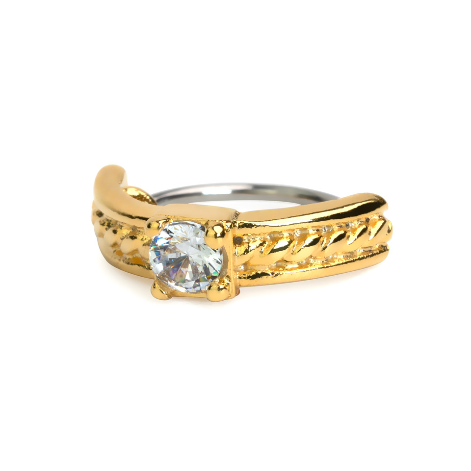 O lado em contacto com a pele é feito de aço cirúrgico e a decoração é feita de latão. Para inserir a argola, basta torcer para a frente ou para trás até formar um S. Assim que a inserires no piercing é só voltar a fechar.