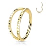 Esta joia é ótima para qualquer ocasião, seja para saídas à noite ou para um jantar demorado. Está disponível em 3 cores: dourado, prateado e preto. A joia tem uma espessura de 1,2 mm e está disponível tanto com um diâmetro de 8 mm como de 10 mm. É ideal para a maioria dos piercings e para o piercing no septo.