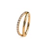 Esta argola dupla em titânio com pedras num dos lados, da secção Bodymod Trend, dá um toque de frescura com a sua estrutura dividida. Um dos lados é suave e simples e o outros tem uma linha de pedras. São dois estilos na mesma argola.