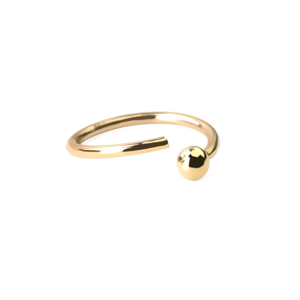 Linda argola de piercing para a orelha, com acabamento de qualidade e o tamanho ideal. Ao dobrar o aro de lado, você pode inseri-lo facilmente e fechá-lo novamente na forma redonda até que a haste se ajuste à esfera fixa.