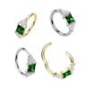 Esta é a atualização que o teu conjunto de piercings estava a precisar. Com a sua pedra verde quadrada, vai ser impossível não te afirmares com esta argola em titânio com pedra verde no centro Bodymod Premium. A pedra está rodeada por anotações triangulares fortes que refletem a luz de todos os lados. É a elegância da geometria com um toque de cor.