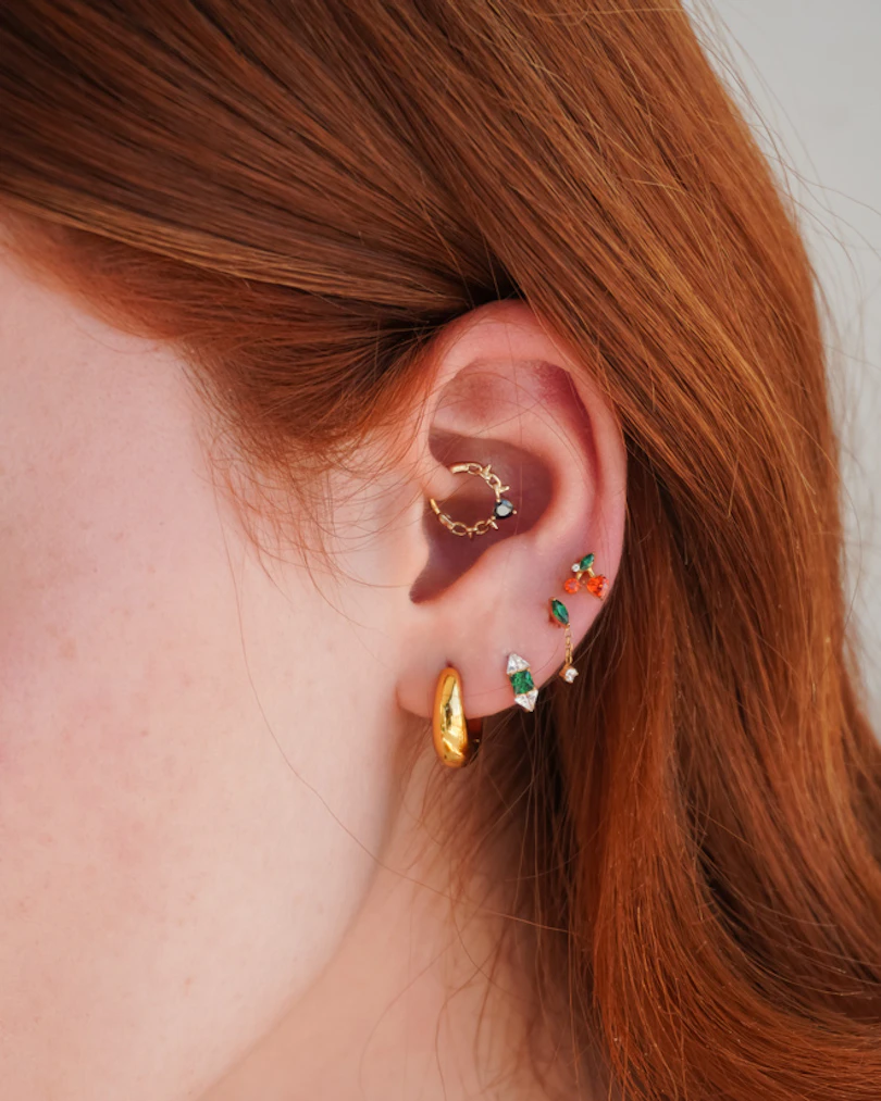 Está disponível em dourado e prateado. Este huggy está pronto para brilhar no teu daith, helix, rook ou lóbulo.