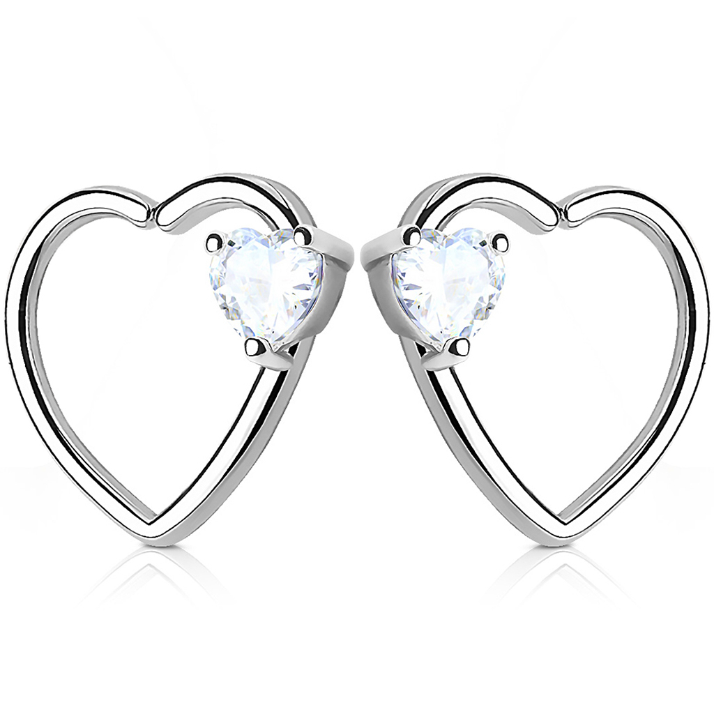 Nome: Argola para a orelha em forma de coração com pedra incrustada