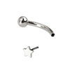 Este piercing banana é ideal para vários piercing, incluindo os na sobrancelha, na orelha ou no lábio. Contém uma estrela num dos lados e uma bola no outro.