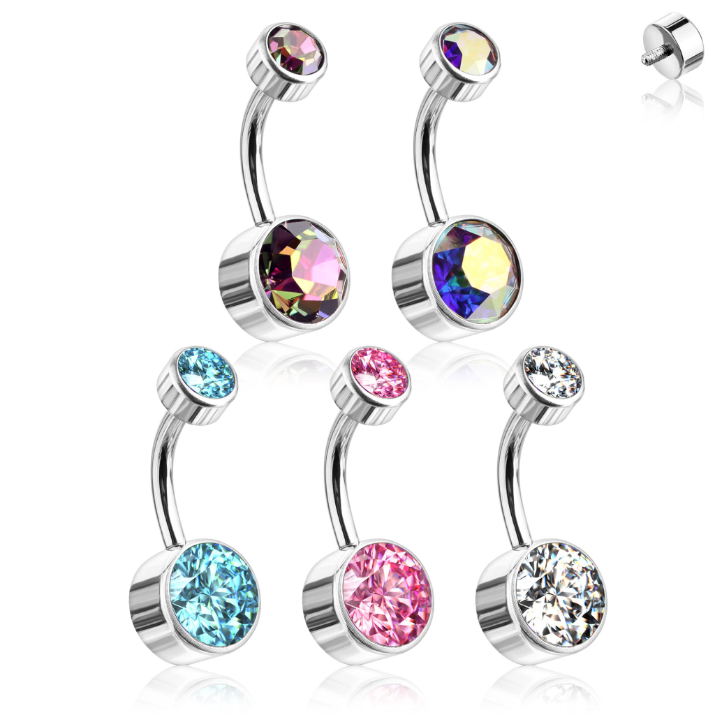 Em adição ao material, esta peça de joalharia tem outra fantástica propriedade - a forma como a bola é enroscada, ou seja, a rosca está na parte de fora. Nesta banana de umbigo, a bola é enroscada dentro da barra, prevenindo assim quaisquer danos ao teu piercing. As bolas desta banana estão disponíveis em diferentes cores de pedra, a qual podes escolher de acordo com a tua personalidade ou outfit.