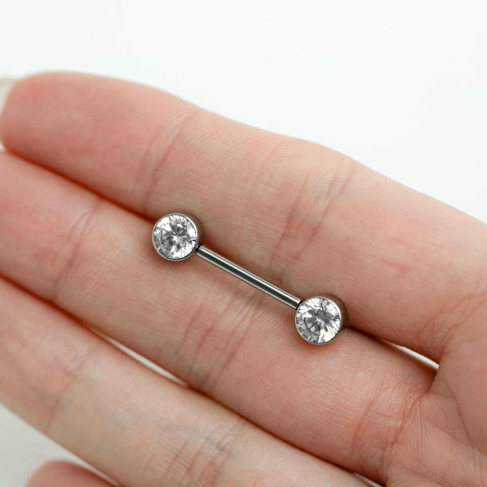 Nome: Barbell de pressão em titânio para o mamilo com pedras embutidas