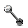 Este barbell para a língua é feito de aço cirúrgico revestido a titânio e tem um revestimento em titânio preto.