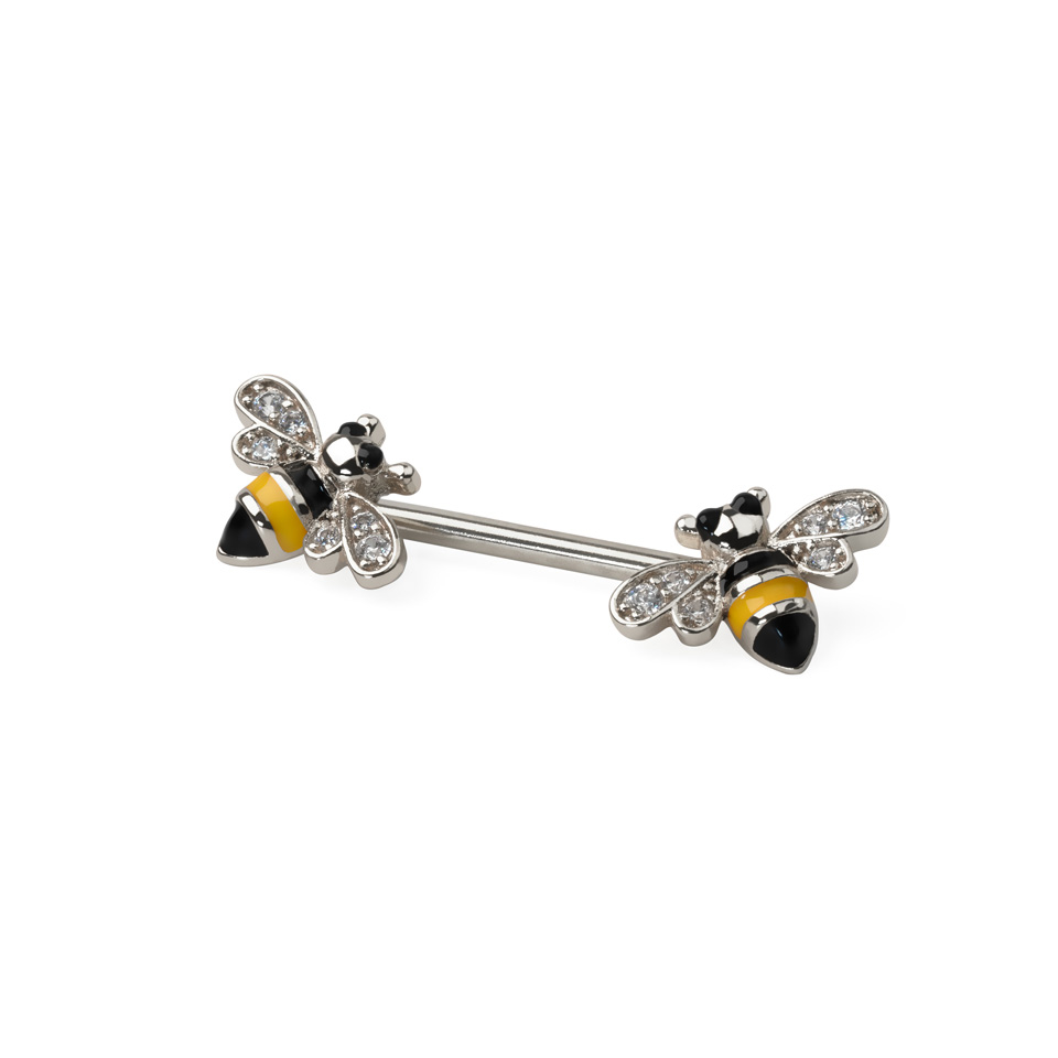 Aqui temos uma oferta linda, para o caso de andares à procura de designs únicas para o teu piercing no mamilo. A joia é composta por um barbell reto de 14 mm, mas a parte que é colocada no mamilo pode variar por causa dos abelhões.