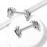 Nome: Barbell para o mamilo com mãos de esqueleto