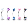 Como pode ver na imagem de cima, esta barra curvada está disponível em diferentes cores. Pode escolher o a grossura da barra e a cor das suas bolas que mais gostar, inclusive as originais cores roxo e multicor.