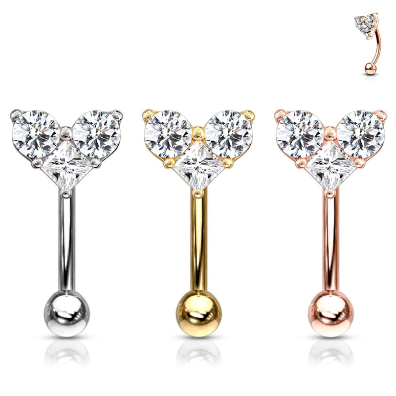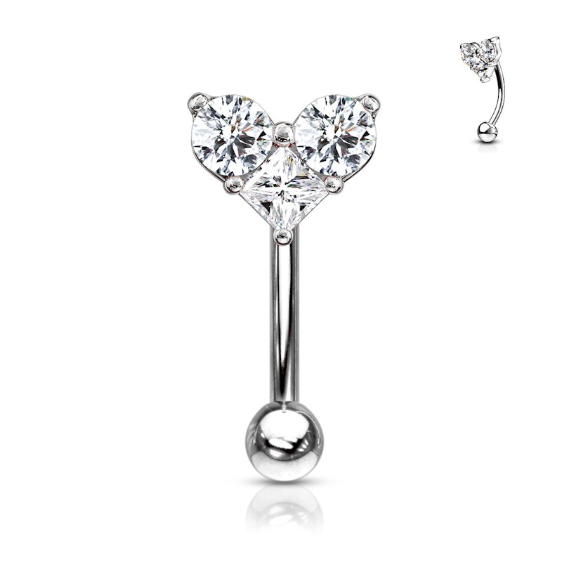 A joia aqui apresentada tem uma barra que pode ser usada, por exemplo, na sobrancelha. Encaixa-se perfeitamente em diversos piercings, inclusive piercings íntimos, como o Christina.