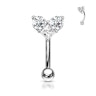 A barra da joia tem um comprimento entre o coração e a bola de aproximadamente 8 mm. e a barra com espessura de 1,2 mm. É feita em aço cirúrgico e posteriormente foi colorida com ródio ou fina camada de ouro de 14 quilates.
