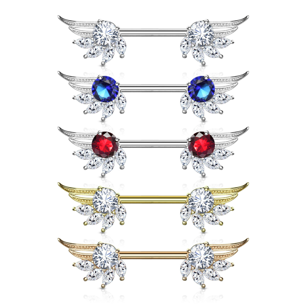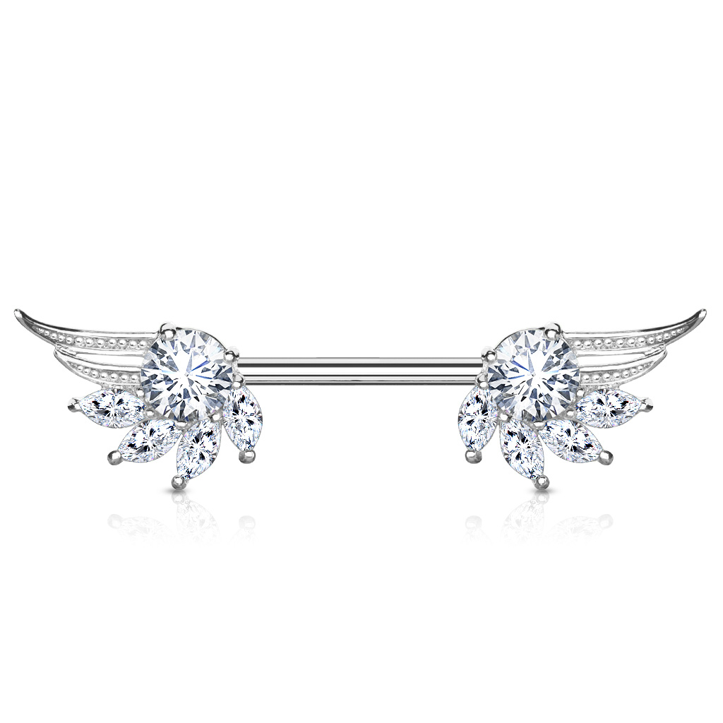 Barbell de mamilo com asas de anjo e pedras em forma de marquesa