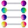 Na foto acima podes ver uma barra de piercing que é feita de aço cirúrgico com duas bolas em cada lado. As bolas da joia têm um revestimento de borracha e tons de cores que diferentes. Podes escolher quais tons de cor desejas nas bolas, dependendo do que mais gostas, seja isso azul/verde ou rosa/amarelo. Todos modelos têm a mesma espessura de 1.6 mm. e um comprimento de 16 mm. Ambas as bolas podem ser desenroscadas, assim podes compra barras mais curtas ou longas para usar, se desejas isso.