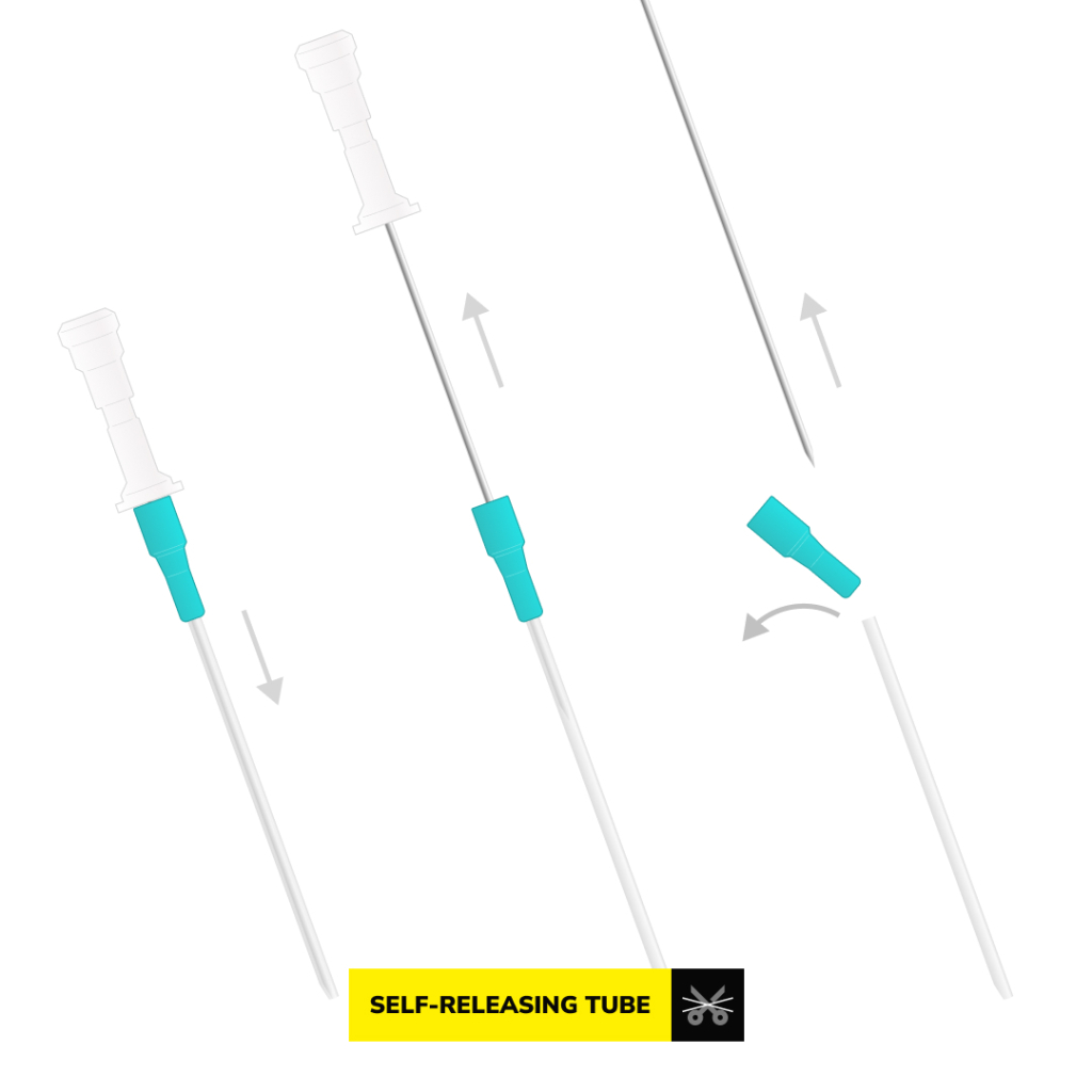 As agulhas da Mosquito são muito afiadas e são esterilizadas com óxido de etileno. Em cada caixa, existem 50 agulhas esterilizadas e cada uma delas vem um cateter. O bom deste modelo é que já não precisas de uma tesoura para cortar o cateter. O cateter contém um mecanismo que o faz libertar-se automaticamente da agulha, o que significa que a parte colorida sai assim que a agulha é retirada, após fazer a perfuração. Desta forma, só o cateter fica no corpo, de forma que a joia possa ser colocada através do buraco.