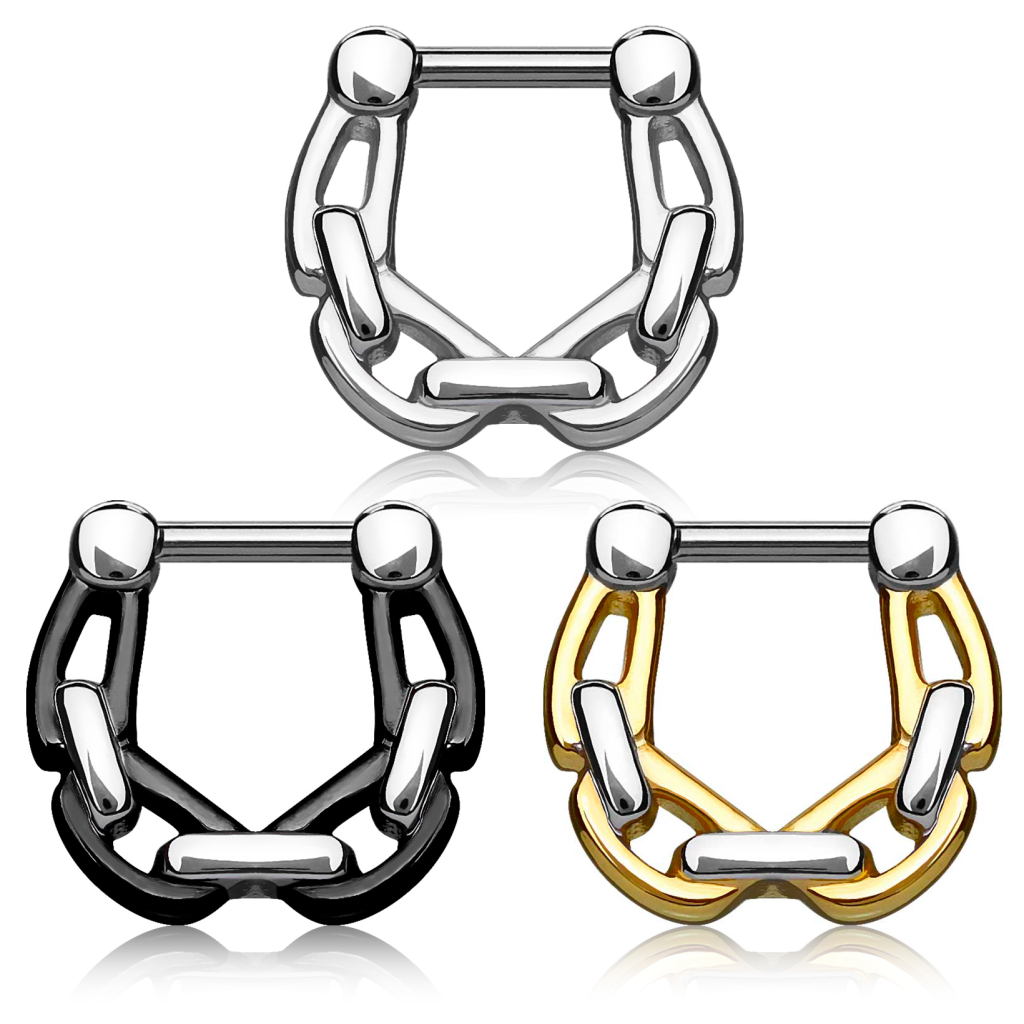 Clicker para o septo em aço cirúrgico com corrente fixa