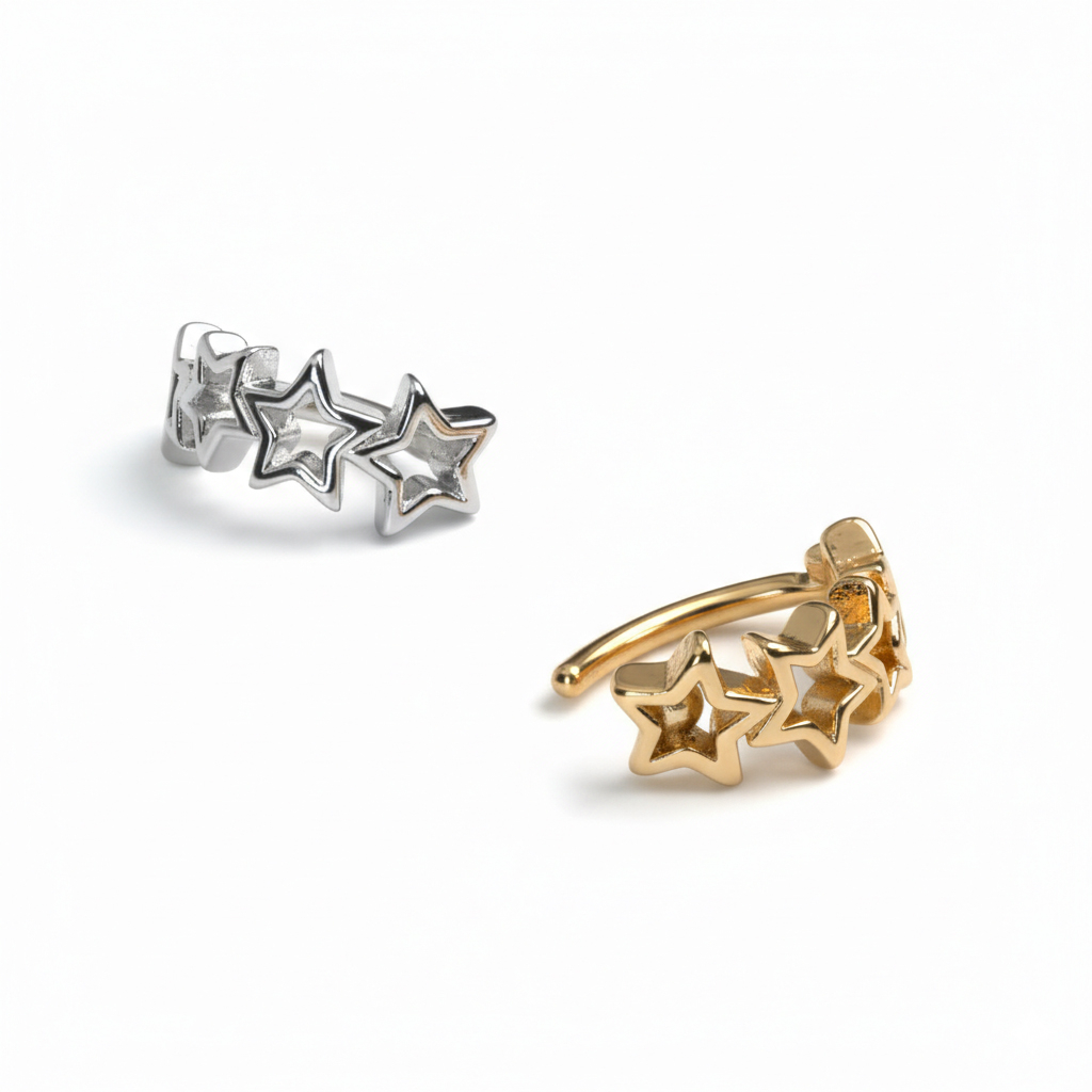 Este clicker articulado para o umbigo com estrelas será um grande complemento à tua coleção de joias para o umbigo. O seu design articulado facilita a inserção e aperto no piercing.