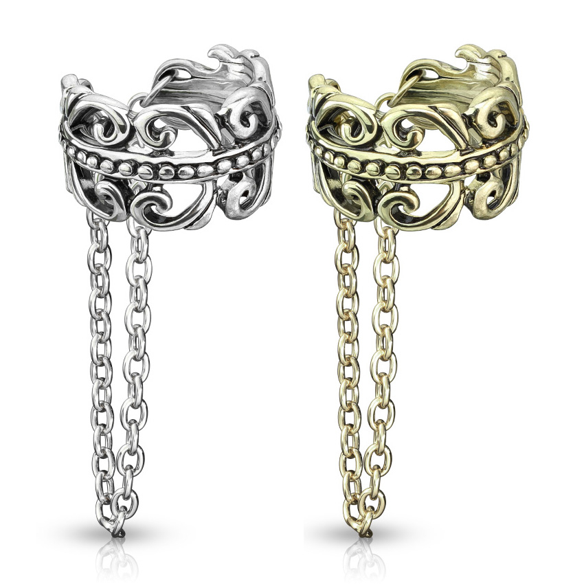 Na joia está também pendurada uma bonita corrente, a qual mede cerca de uns 30 mm. Quando a joia está colocada na orelha, a corrente ficará pendurada da sua orelha, conseguindo um fabuloso e precioso efeito.