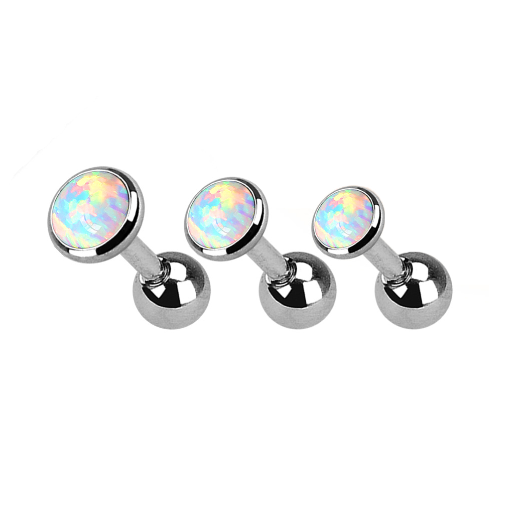 Espectacular conjunto, que consiste em três doces joias para a orelha com opala, em três bonitas cores. Estas joias causam muito interesse, se por exemplo, as colocar lado a lado, na mesma orelha. Cada conjunto contém um brilhante de 3 mm, 4 mm e 5 mm.