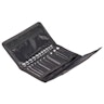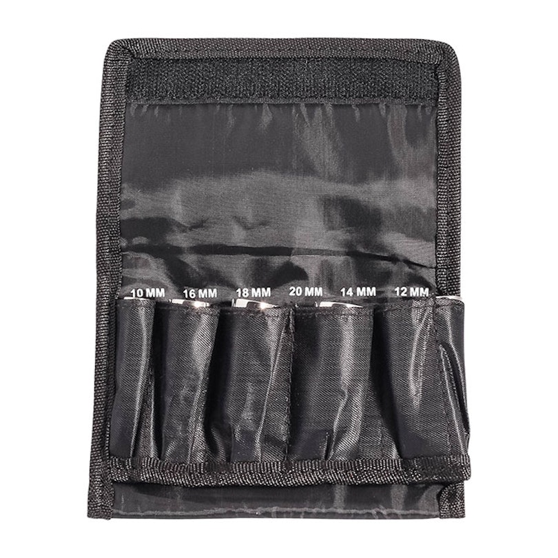 Ambos os conjuntos se encontram em um estojo preto que não é maior que o tamanho de uma carteira. O estojo abre e fecha facilmente com um velcro.