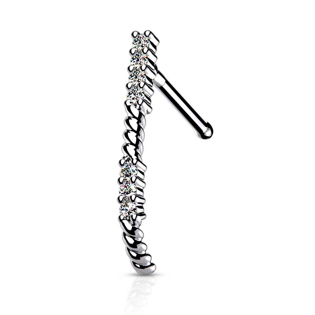 Este artigo é tão único como chique graças às pedras que o cobrem, criando uma linda faixa no nariz, que funciona como uma afirmação de personalidade. O comprimento total deste crawler único é de 13 mm. Esta joia para o nariz está disponível em 3 cores diferentes: dourado, dourado com tons de rosa e prateado. A joia tem as dimensões padrão de uma joia para o nariz: 0,8 mm de espessura e 6 mm de comprimento. Esta é uma joia mesmo divertida e obrigatória para a tua coleção.