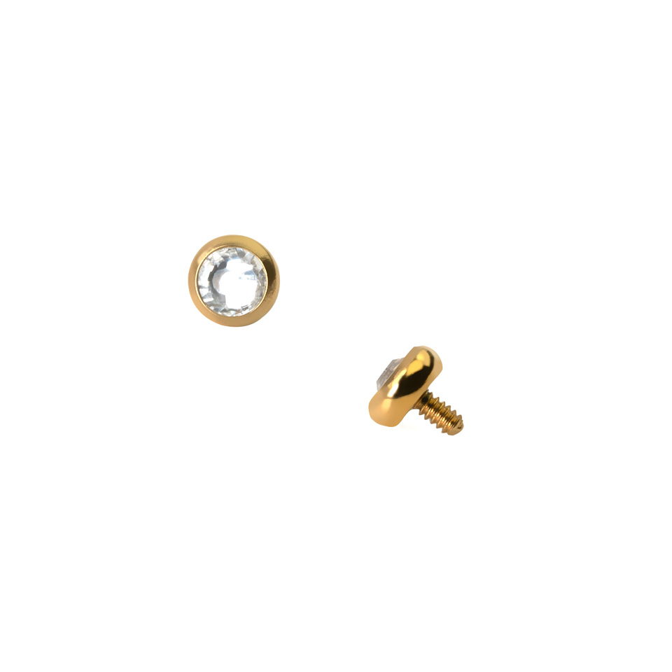 Esta jóia para âncora micro dermal consiste num pequeno disco, no centro do qual tem um bonito brilhante branco. Este é feita de aço cirúrgico, ao qual posteriormente foi aplicado um processo de ionização que lhe atribui as suas bonitas cores. Por isso, podes escolher a tua nova jóia em várias cores, e também vários tamanhos.