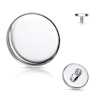 Este fabuloso disco para dermal está disponível em quatro cores fantásticas e muito chamativas. O disco é totalmente plano, uma característica que evita que fique preso na roupa, nos pelos/cabelos ou qualquer outra coisa. Este topo tem uma fina camada de titânio, o qual dá a cor à peça. O revestimento a titânio é aplicado por cima do aço cirúrgico. Os dois materiais juntos perfazem uma excelente combinação para este topo de dermal.