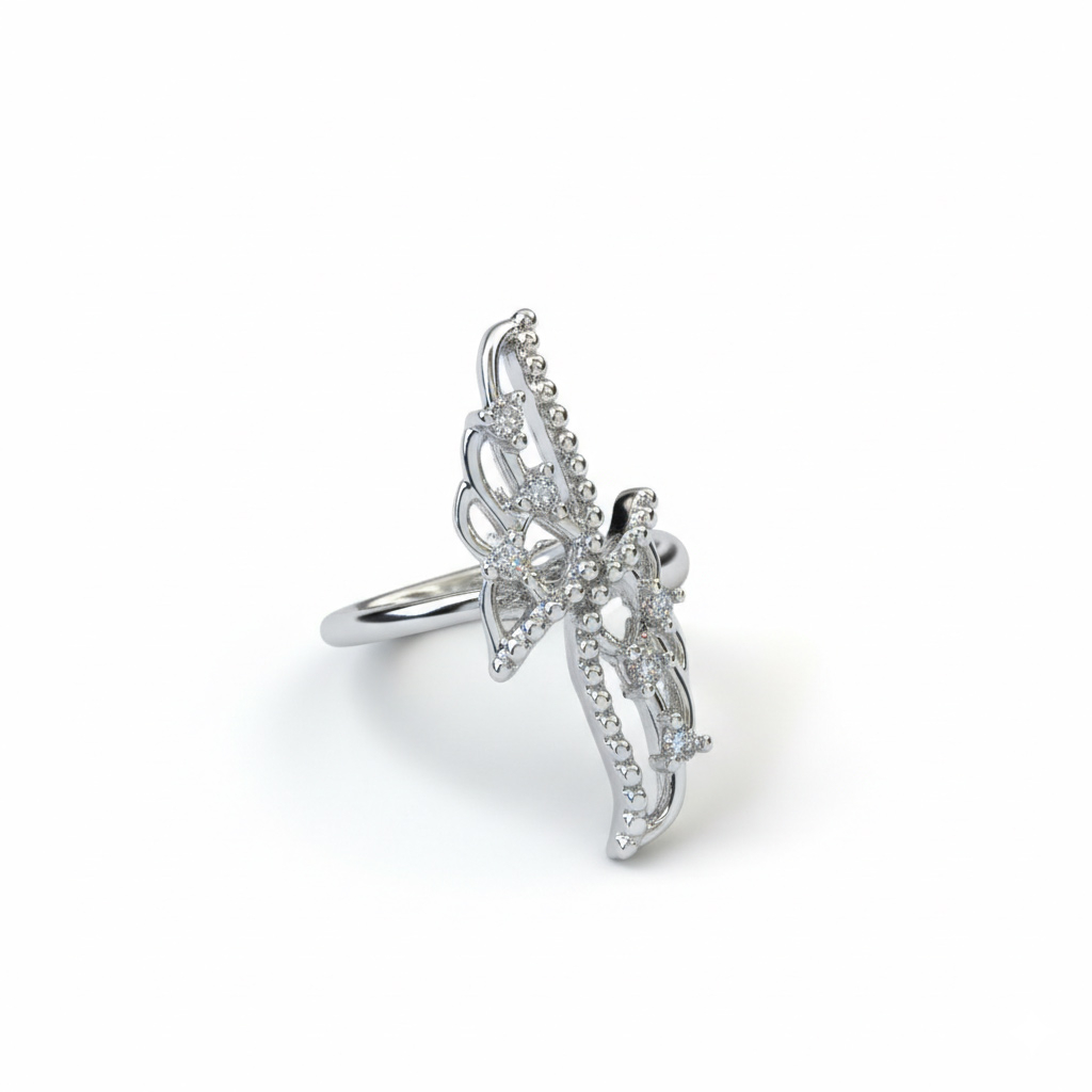 Este glamoroso ear cuff contém um par de asas decoradas com pequeninas pedras e contas. Esta joia, feita de aço de aço cirúrgico, não perde o brilho nem descolora a pele, sendo muito resistente.